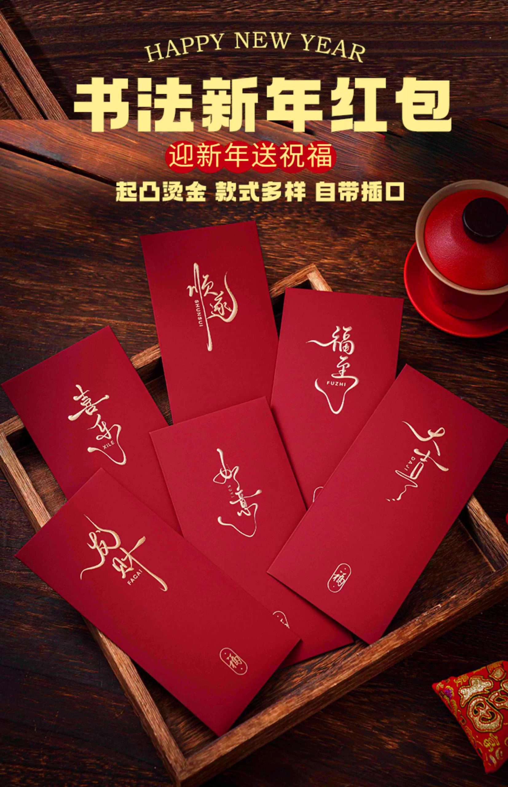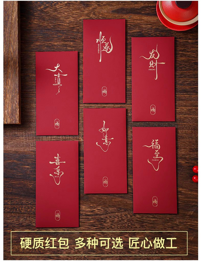 - 二字书法红包:简洁有力,寓意深远,混装6枚不同字样