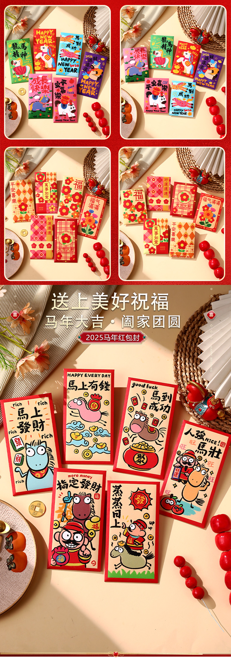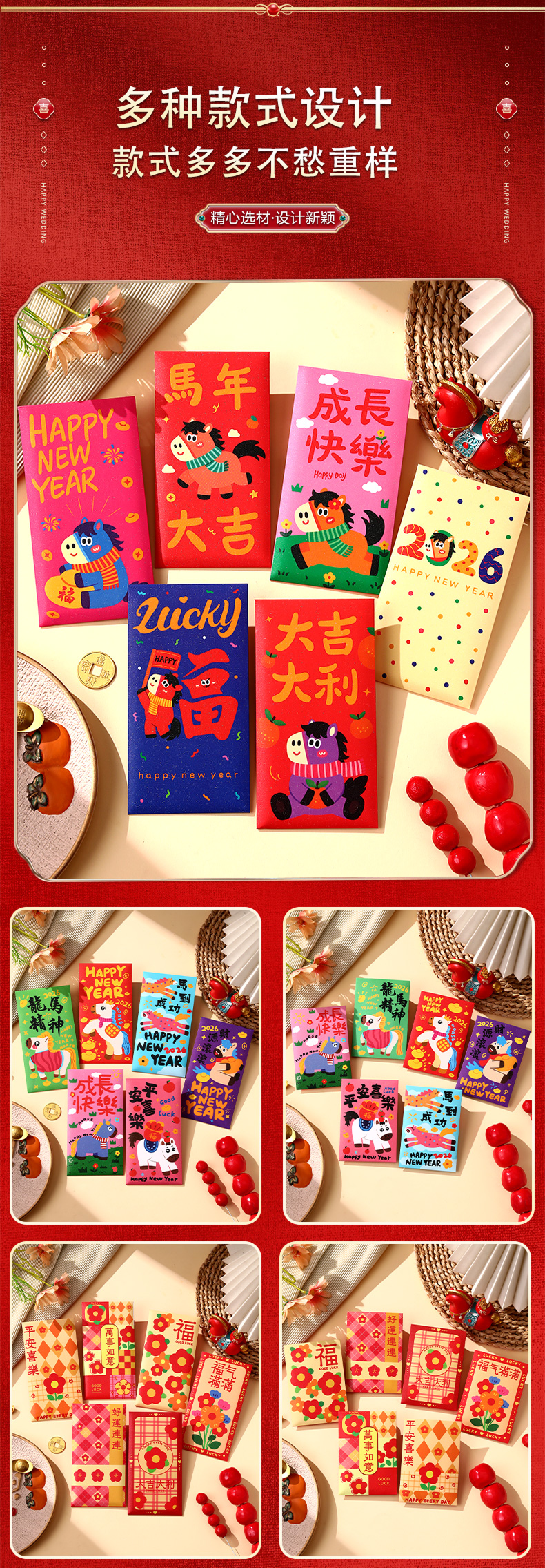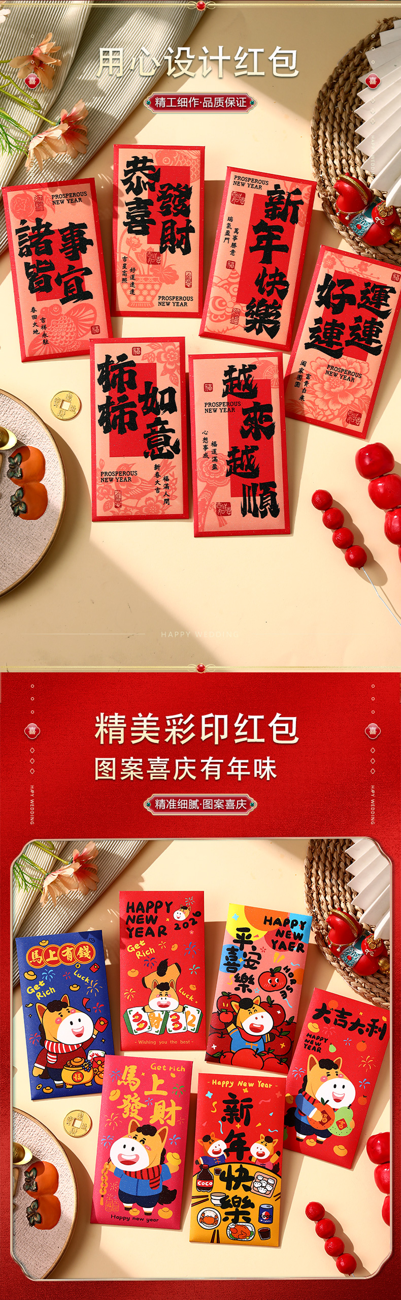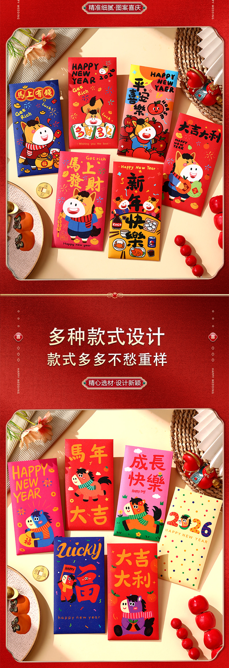 - 给孩子的压岁钱:卡通图案深受孩子喜爱,让收红包变成快乐体验